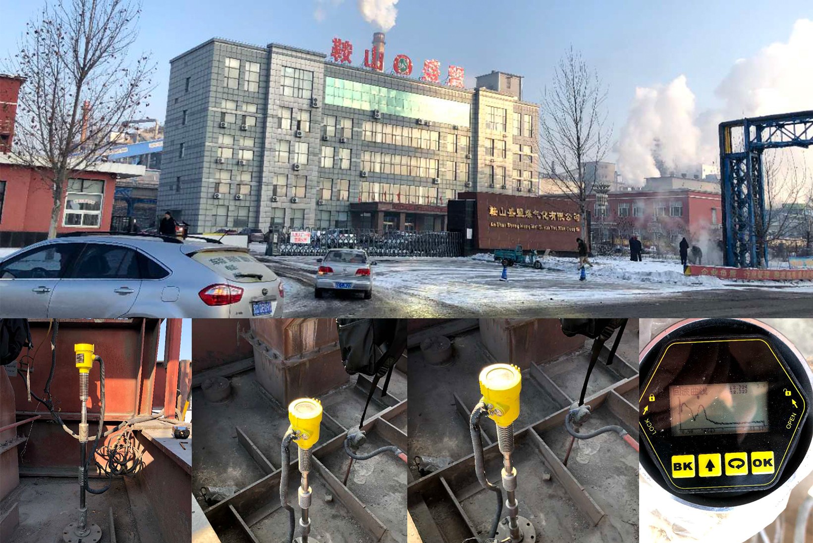 • 山東鋁業該現場主要主要以測量污水、水泥漿液為主,大多部多有攪拌、蒸汽,選購 RBRD17 共計 32 臺。罐內有攪拌槳,攪拌槳一下液位無法測量,因雷達安裝正下方是有攪拌葉片,且葉片寬度、層數比較多,所以無法測量。現場蒸汽比較大。現場安裝圖。現場安裝圖,安裝位置為罐子直徑四分之一處?,F場安裝圖。現場環境圖?,F場安裝圖